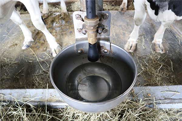 この方法はとてもアバウトで、1つのウォーターカップに入れても左右どちらかの牛が、一度に全部飲んでしまう場合があります。